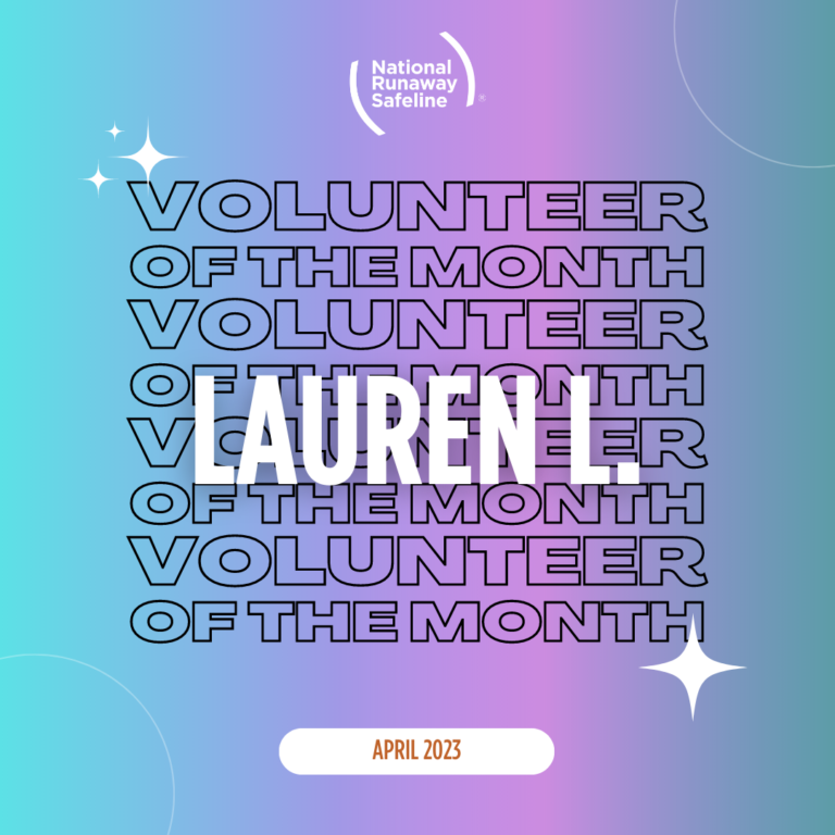We appreciate Lauren’s dedication and commitment to NRS. If you feel inspired by Lauren and would like to learn more about NRS volunteer opportunities, visit 1800RUNAWAY.org/volunteer.